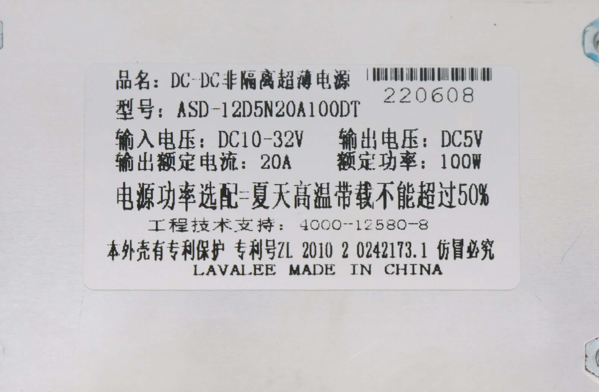 LAVALEE ASD-12D5N20A100DT Car LED Screen Dedicated Power Supply Specification