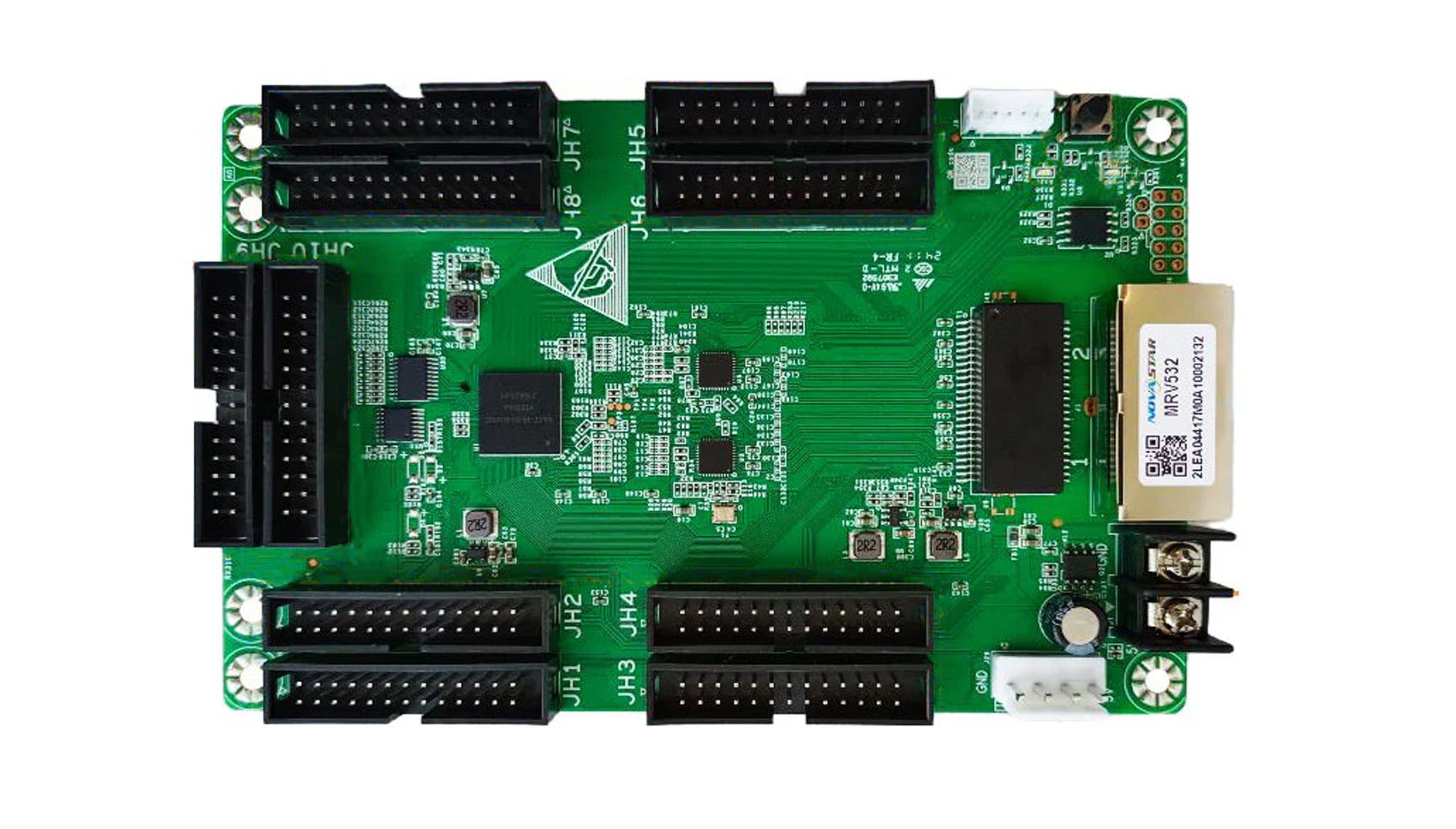 The MRV532 uses 10 standard HUB320F connectors to ensure highly stable communication, supporting up to 40 groups of RGB real pixel data, 40 groups of 3-color sub-pixel data, or 30 groups of 4-color sub-pixel data.