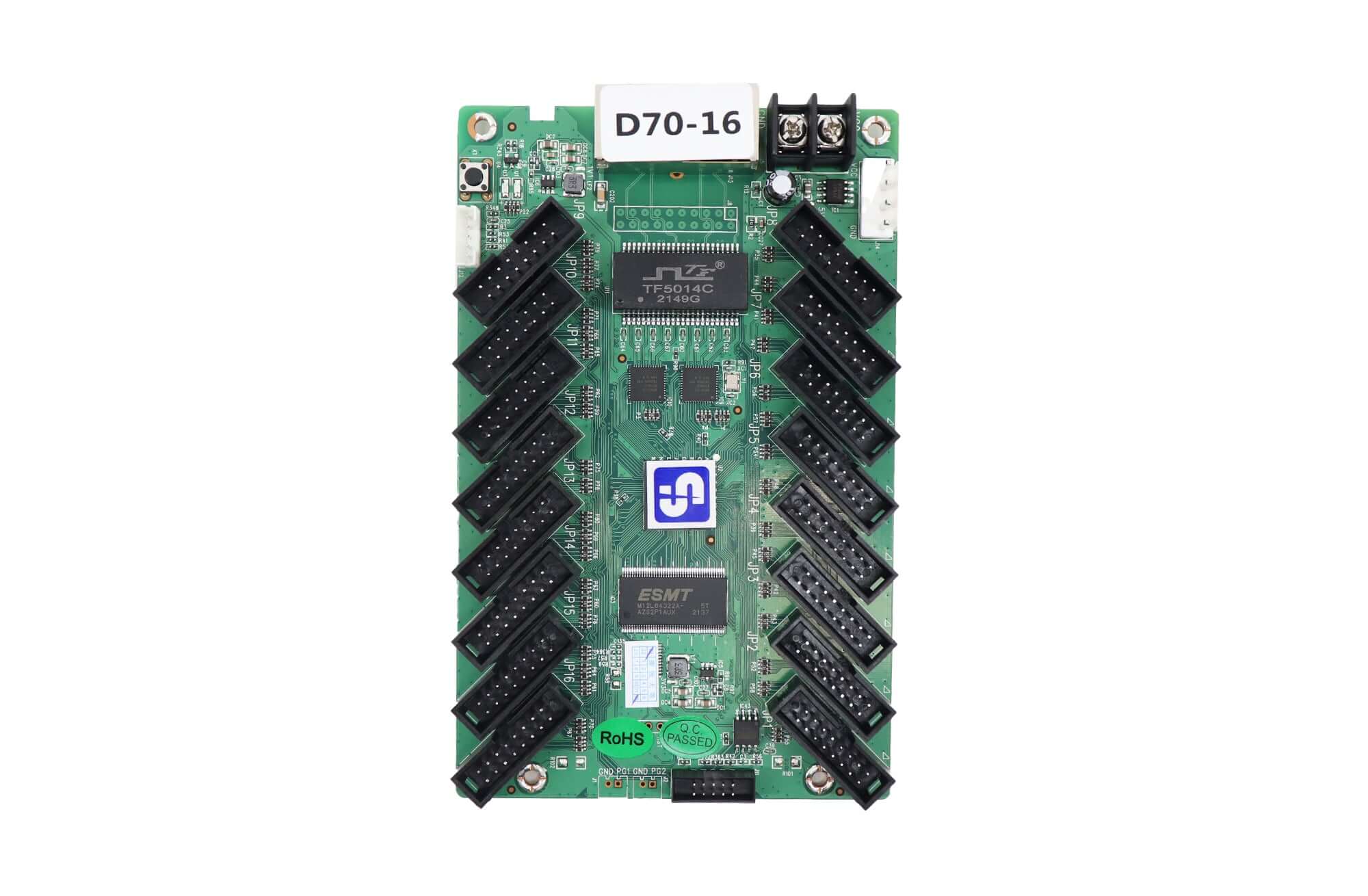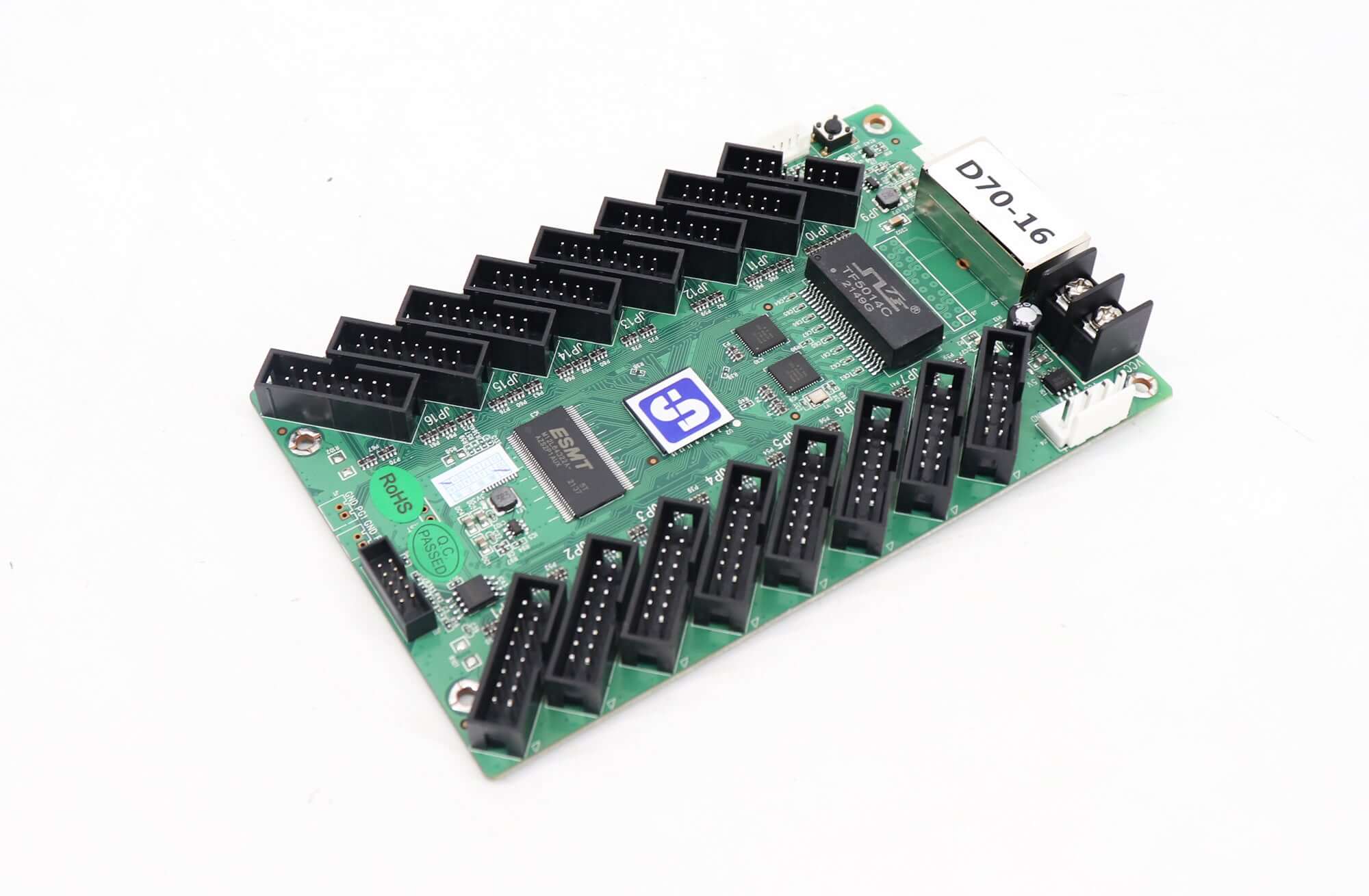 D70-16 is a standard receiving card launched by Xixun Technology. It adopts 16 standard HUB75E interfaces and supports up to 32 groups of RGB parallel data.